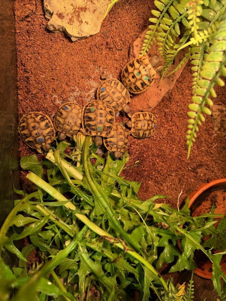 meine 7 Nachzuchten der Griechischen Landschildkröte (THB) aus 2023 sind wohlbehalten aus der Winterdtarre „aufgewacht“, sind fit, fressen gut und sind bereit in ein neues Zuhause einzuziehen. Natürlich nur in ein Außengehege mit beheizbaren Frühbeet.